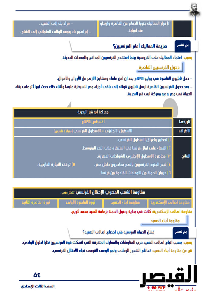 اسئلة واجابات الحملة الفرنسية الصف الثالث الاعدادى الترم الاول 2017 Pdf