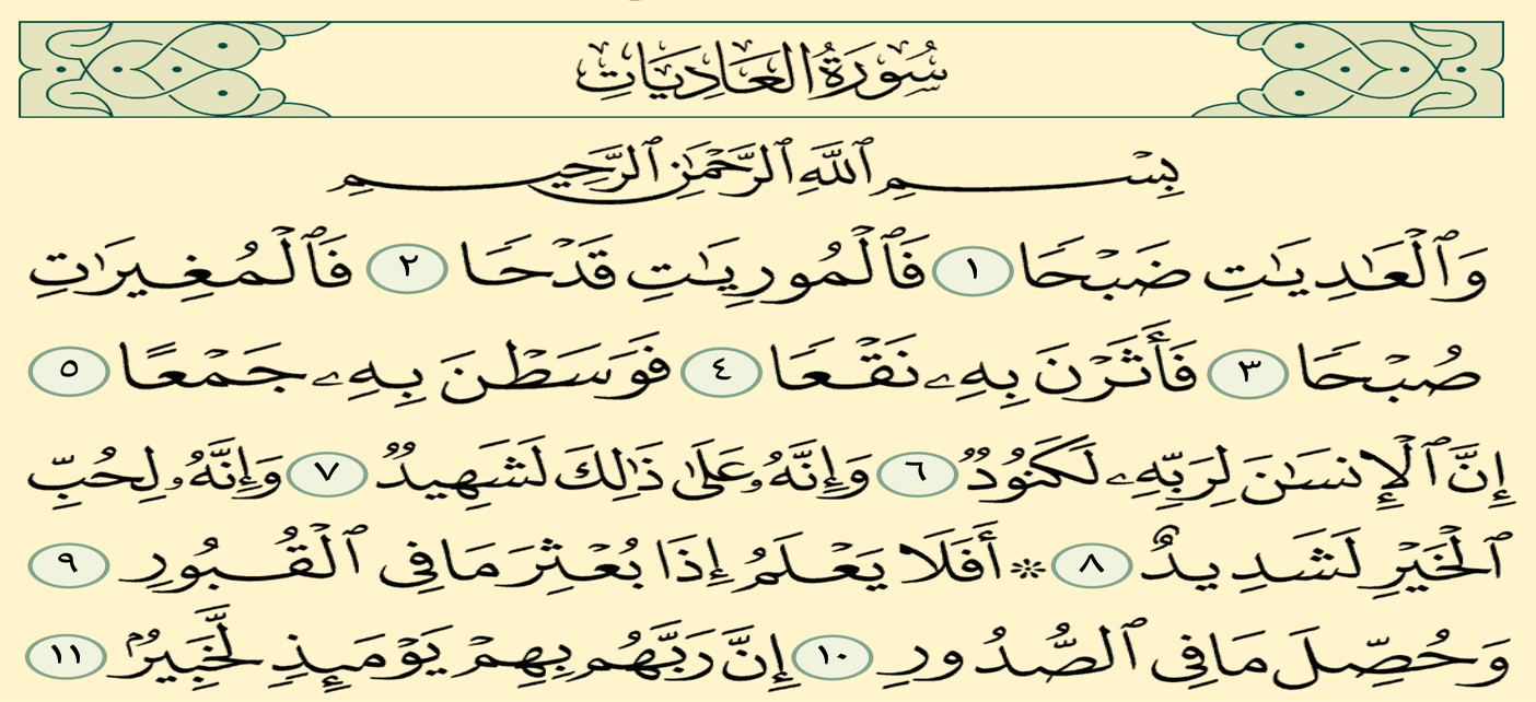 شرح وتفسير سورة العاديات Surah Al Adiyat معاني الأسماء ومعاني الكلمات وتفسير القرآن الكريم