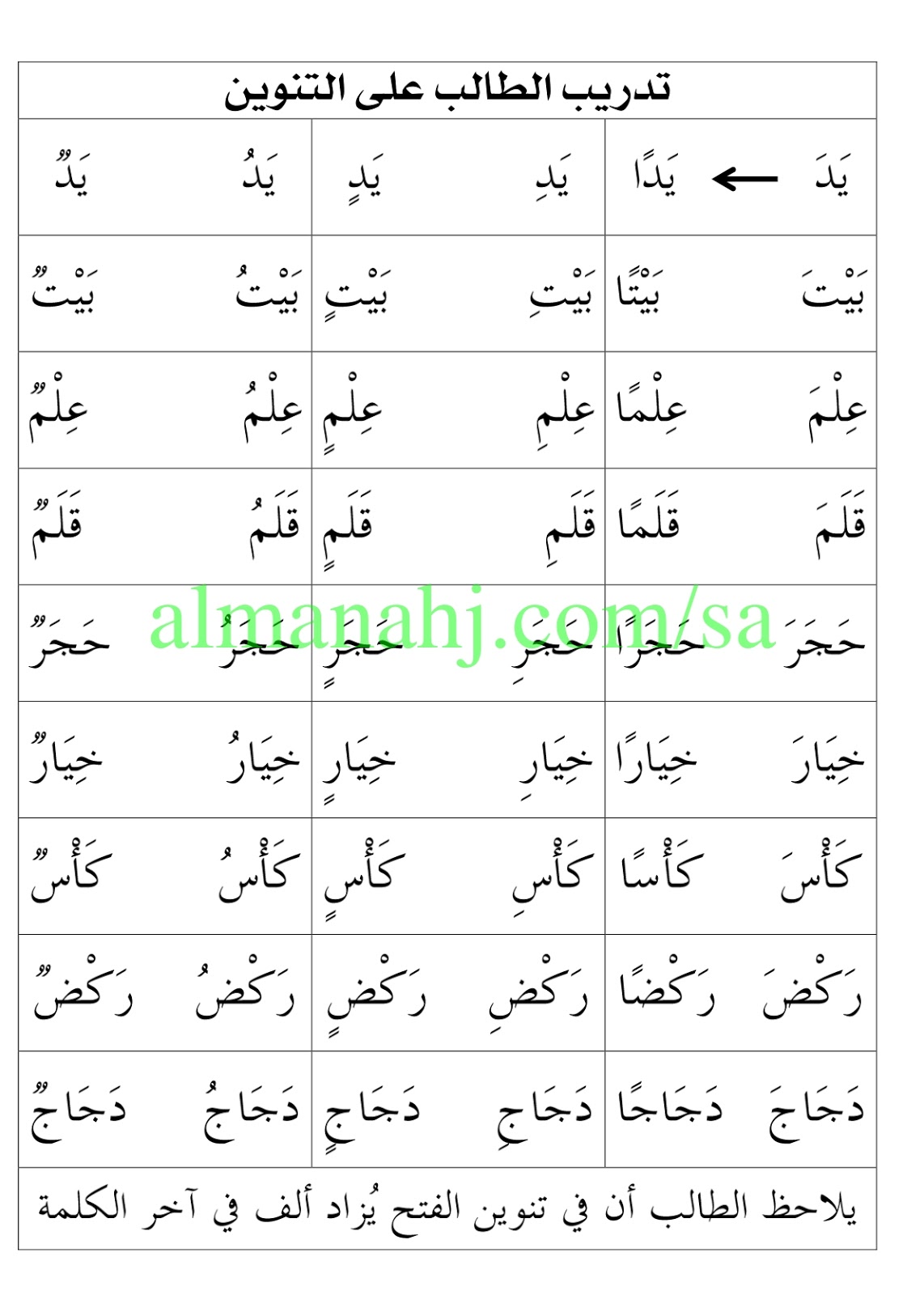 تدريب على التنوين الصف الأول لغة عربية الفصل الثاني المناهج السعودية
