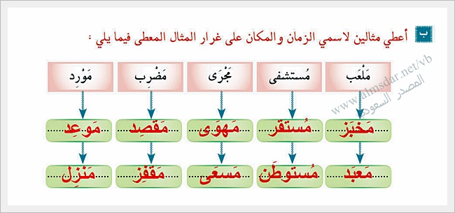تحضير درس إسما الزمان و المكان ثانية متوسط الجيل الثانى جواب