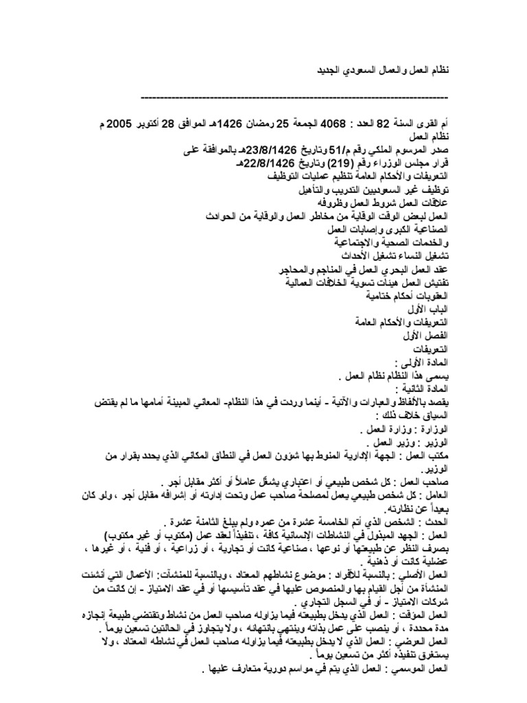 نظام مكتب العمل والعمال السعودي الجديد Pdf