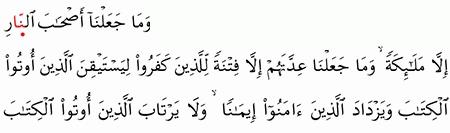 طالب علم ش بهات A Twitteren وما جعلنا أصحاب النار إلا ملائكة وما جعلنا عدتهم إلا فتنة للذين كفروا ليستيقن الذين أوتوا الكتاب ويزداد الذين آمنوا إيمانا ولا يرتاب الذين أوتوا الكتاب