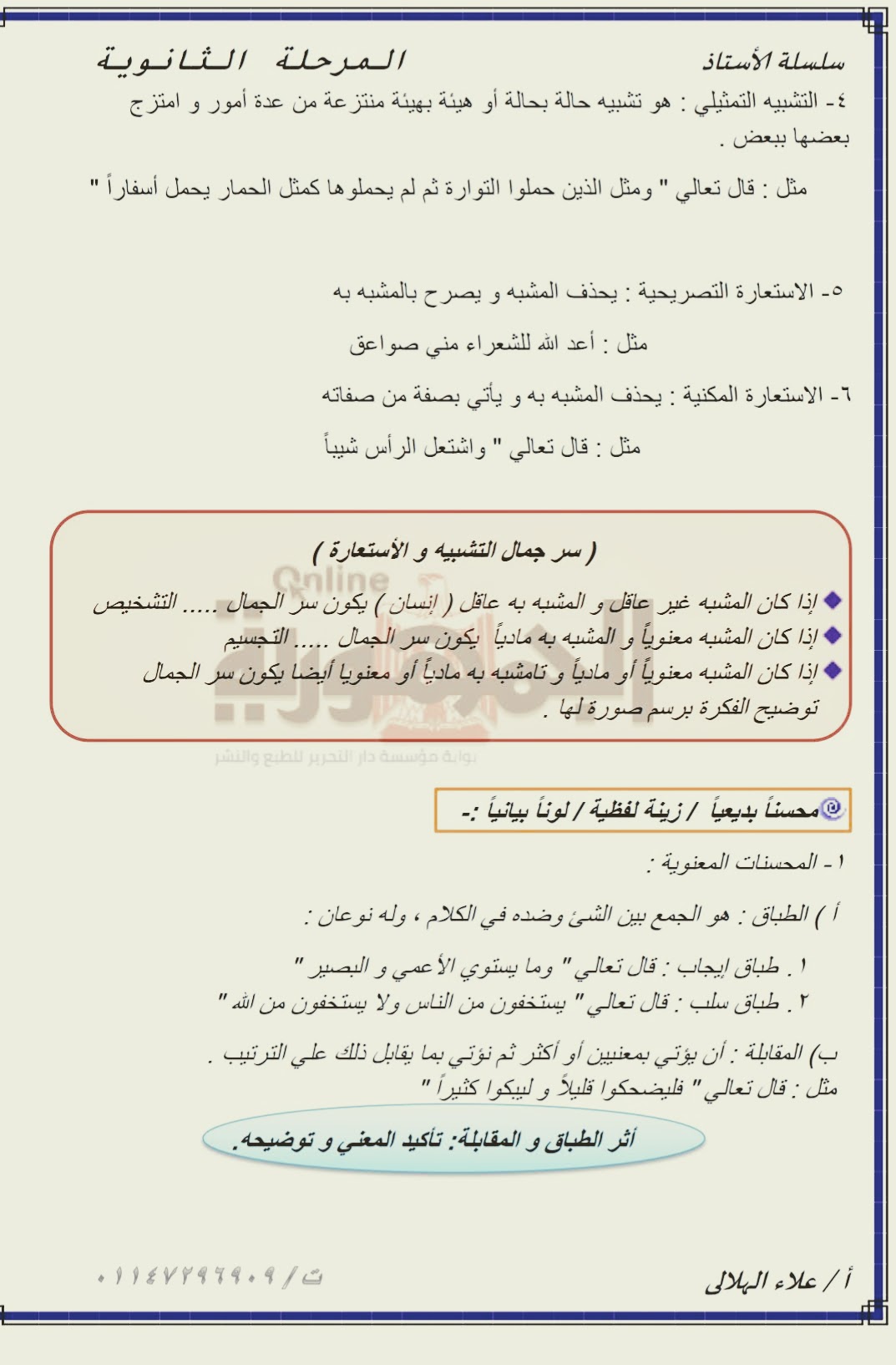الصور البيانية والمحسنات البديعية متوسطة ابن باديس مسكيانة Facebook